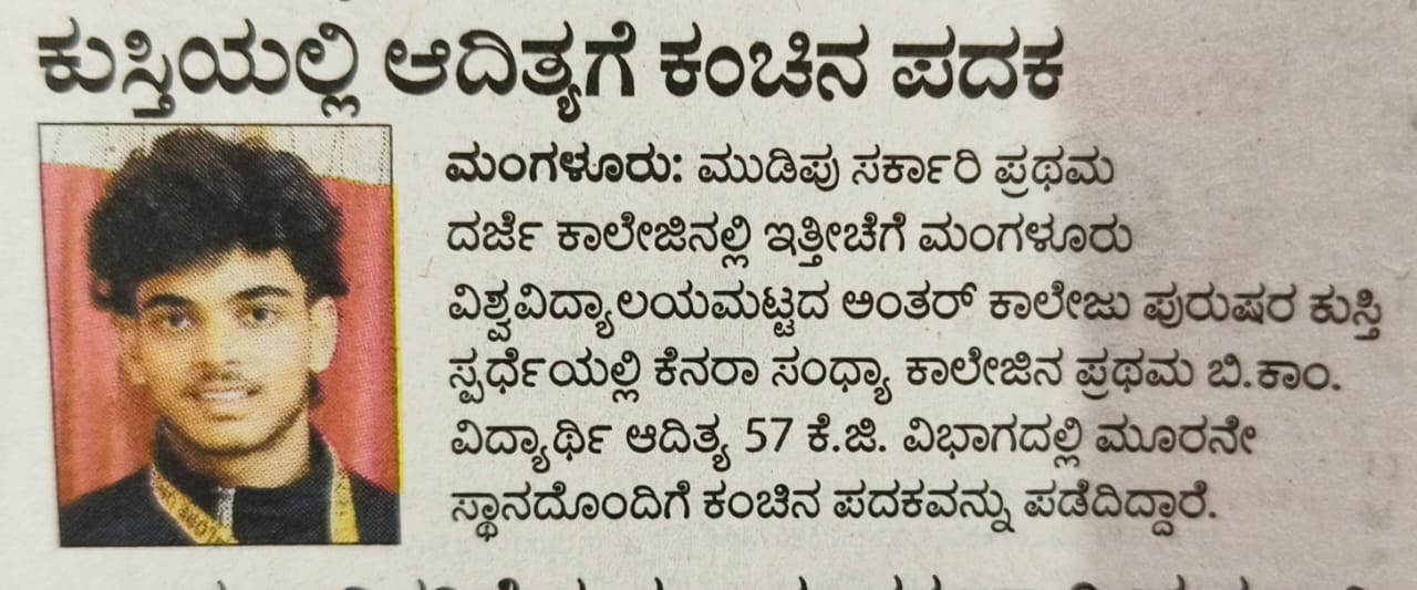 Aditya of first year has won bronze medal in wrestling state level match held at Govt college Mudipu. Congratulations to him